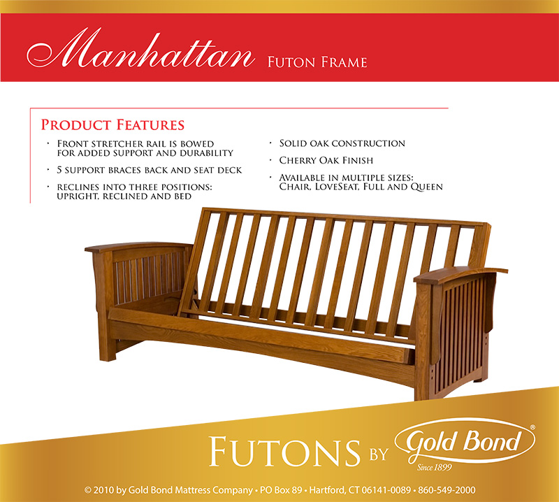 - The Gold Bond Manhattan Futon Frame is available in Siberian solid oak.