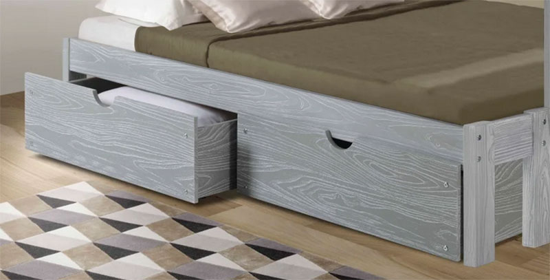 It’s easy with Innovations because every bed and bunk use our Roll Out Drawers which come in a multitude of color choices. These drawers come as a set of 2 drawers.
