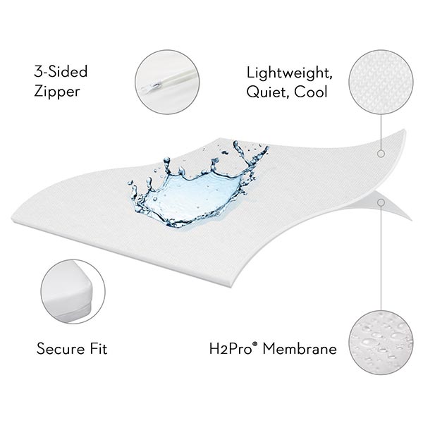 The patented Encase® HD mattress protector offers complete encasement protection from bed bugs, dust mites, and liquids. Its laboratory-certified Micro Tite® zipper closure is bed bug proof and allows for easy removal as the top half zips completely off. Also laboratory-certified, the H2Pro® membrane creates a quiet, liquid-proof and breathable barrier against allergens, dust mites, and liquids. Pillow protectors are available to create a healthy sleeping environment. With a 15 year warranty, these offer the best protection and will fit mattresses up to 22″.