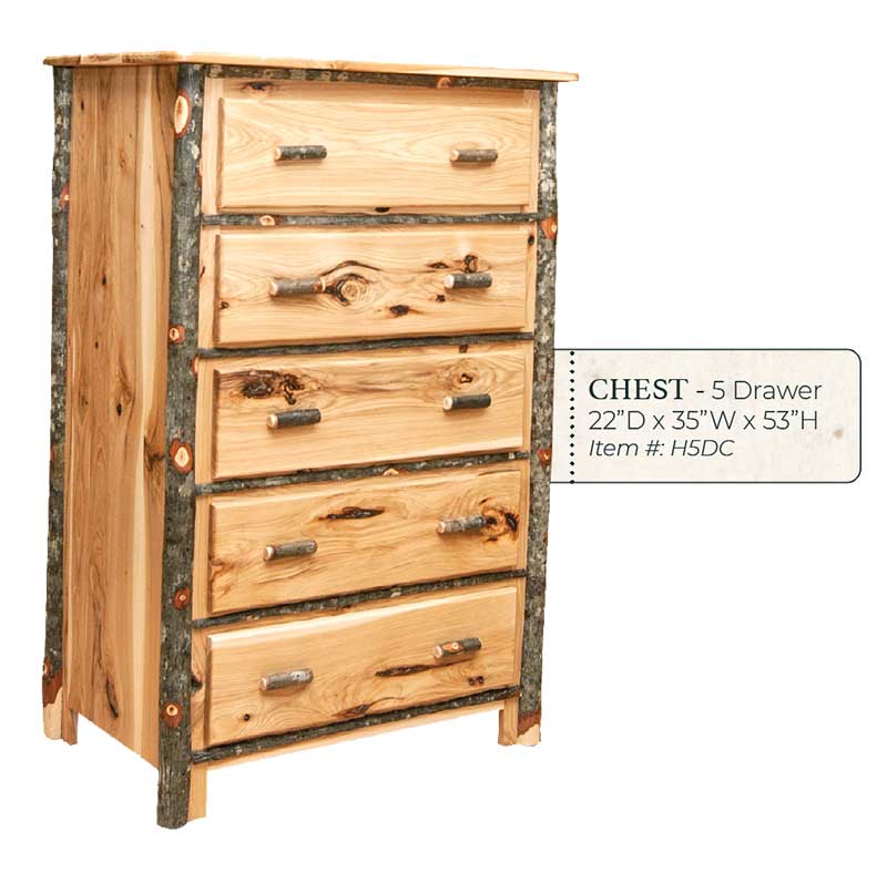 Hickory 5 Drawer Chest- by Miller's Rustic Furniture