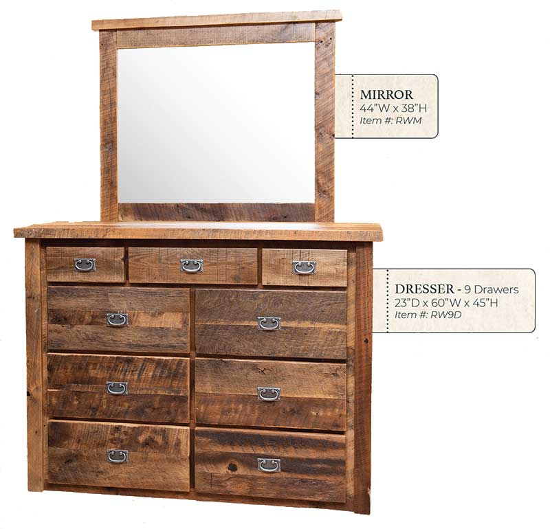 Reclaimed Barnwood 9 Drawer Dresser - by Miller's Rustic Furniture