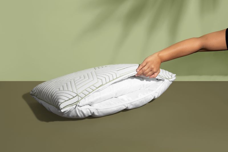 Enjoy a bonus bottle of lavender-scented CBD bedding mist with each pillow. In a simple spritz, you can personalize your sleep experience. Machine washable cover.